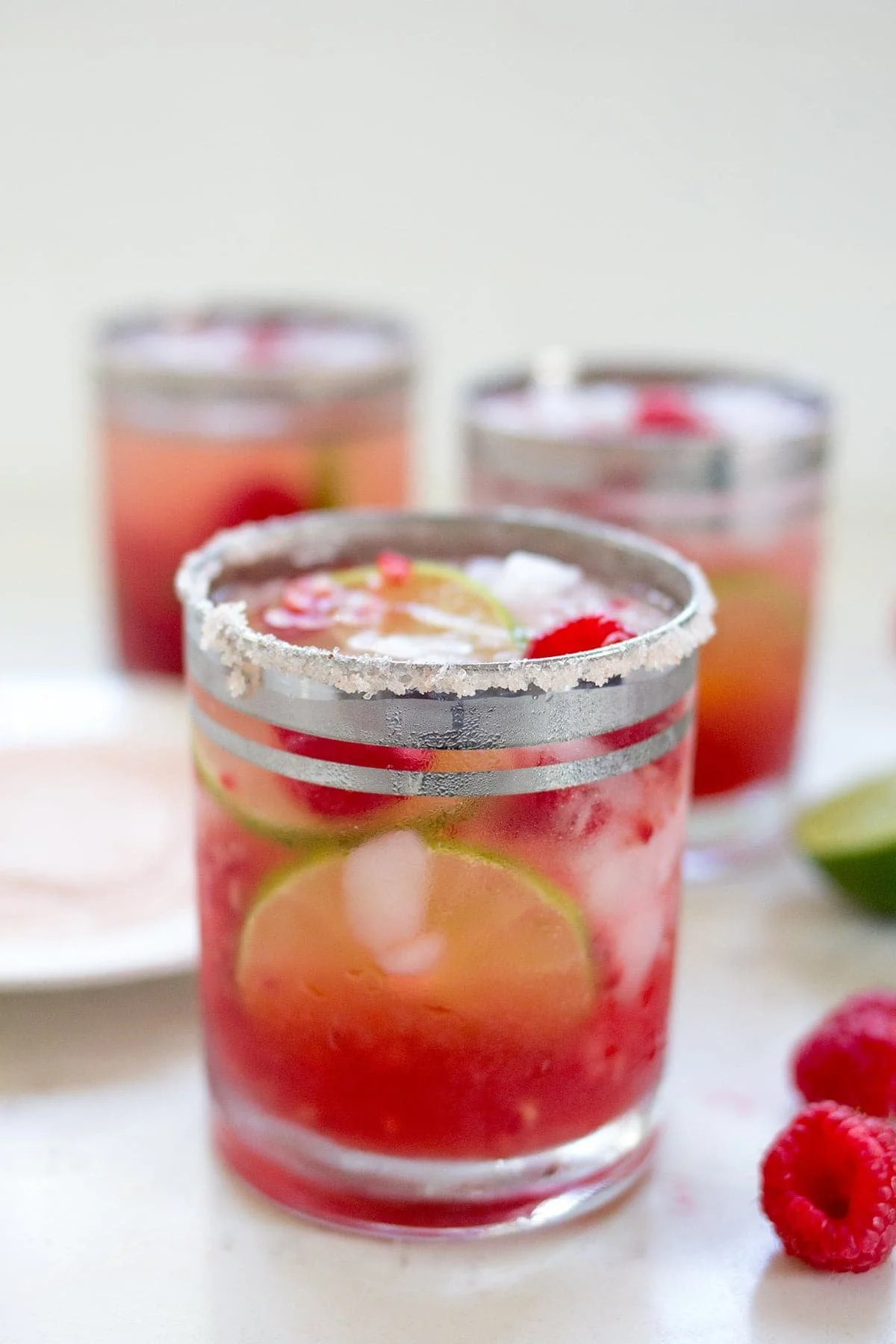 Shake well. Pour into glasses and add a splash of sparkling water.